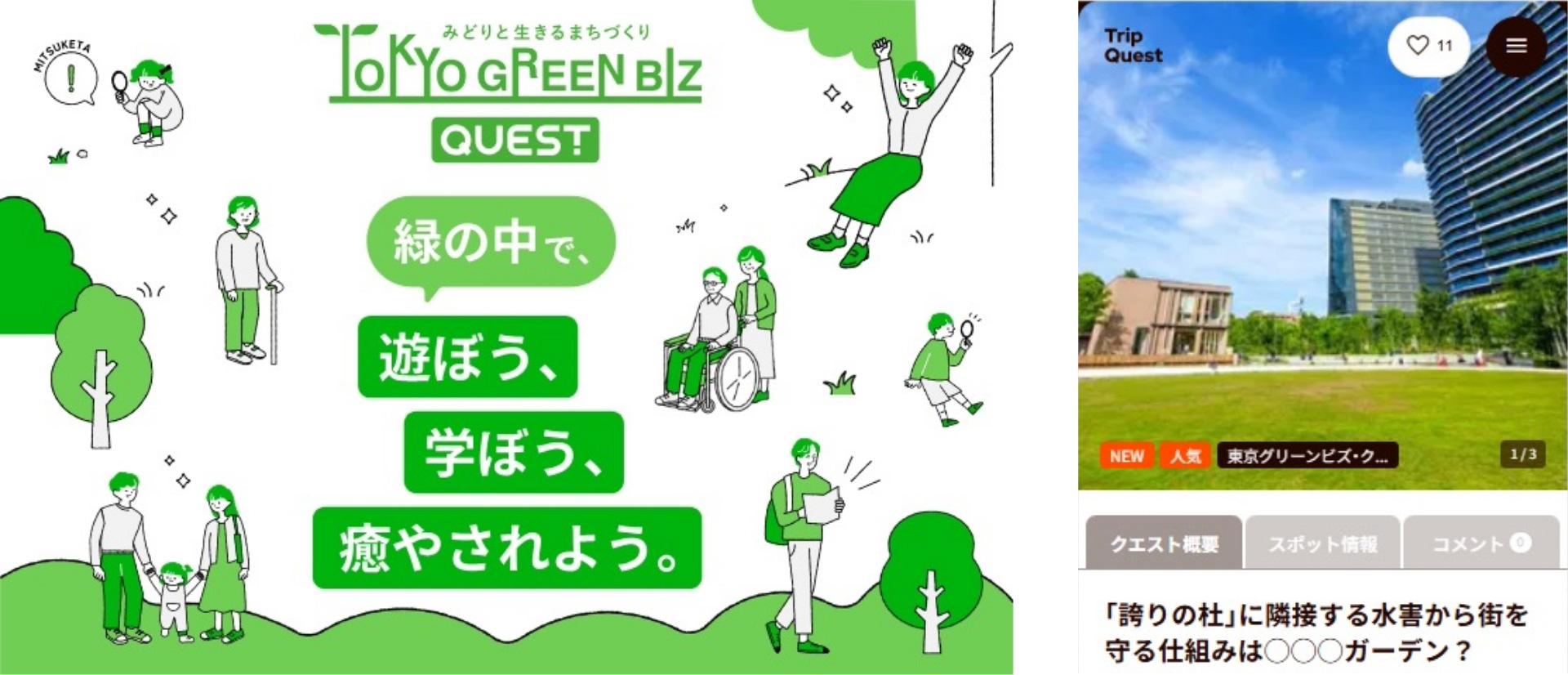 継続導入に至るまでの経緯株式会社ホーンと政策企画局は、令和6年度、協働テーマ「子供から大人まで興味を持って学べるデジタルコンテンツを提供して、東京の緑を「まもる」「育てる」「活かす」人を増やしたい!」で協働プロジェクトを実施し、緑のスポットへの回遊意向や緑の取組への理解の向上という成果をあげ、高い評価を得ることができました。この成果を受け、令和7年度より株式会社ホーンとの東京グリーンビズ・クエストの取組を継続導入しております。